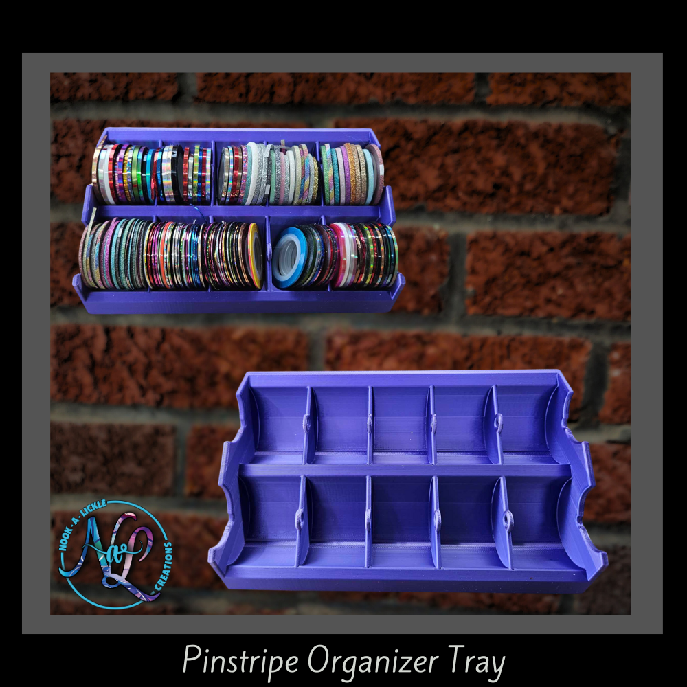 Keep your nail striping or pinstriping tape neat and easy to access with this 3D Printed Organizer Tray! It features 10 sections to separate your rolls and a built-in dowel holder to keep everything in place while you move it around your craft space (dowels not included).