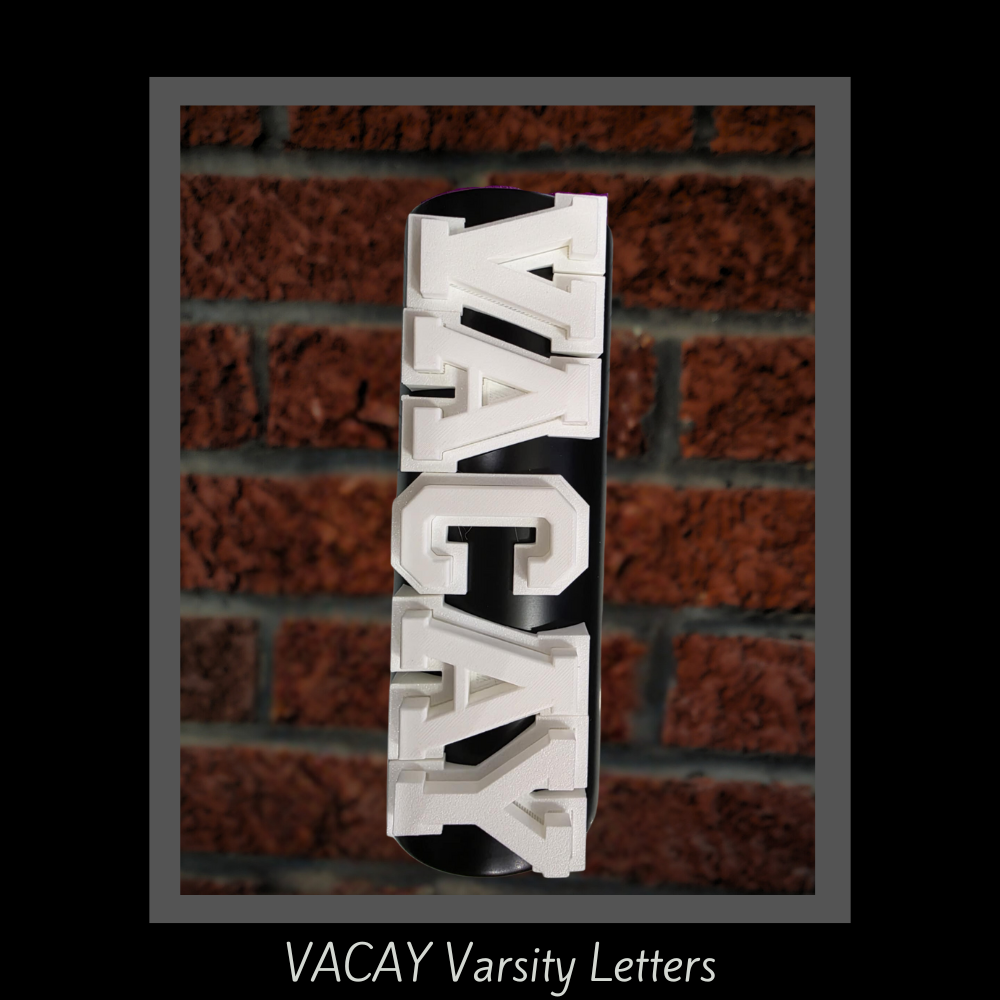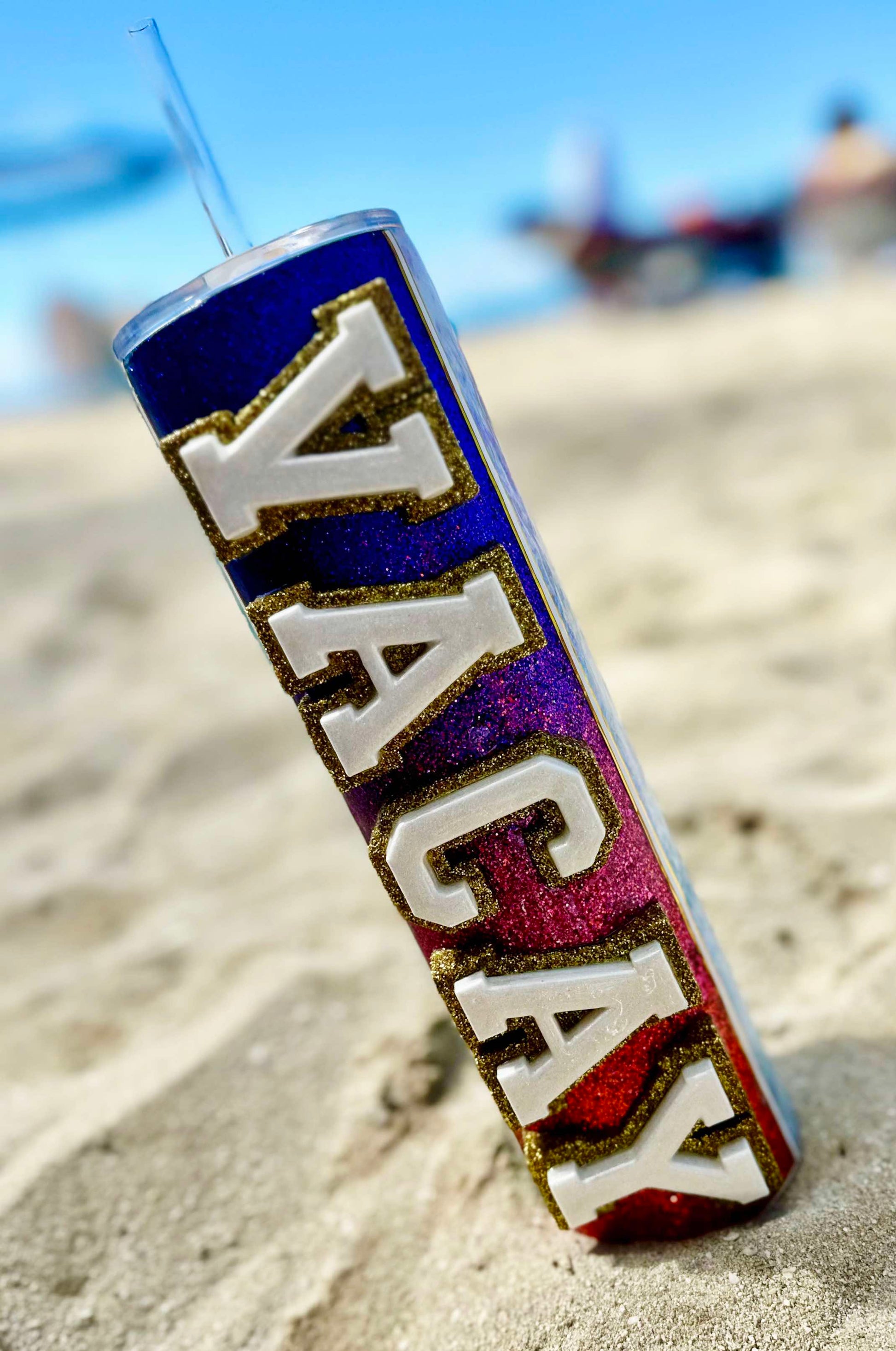 Add some spunk to your vacation with our tumbler hugger! Keep your drinks chilled and your style on point. The ultimate add-on for any tumbler on vacay. Two parts per letter, designed like classic varsity letters.
