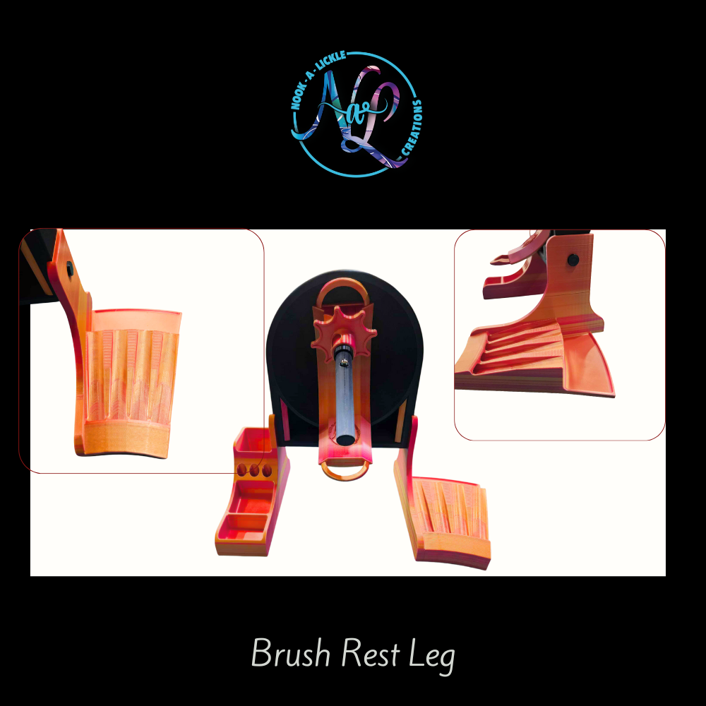 Keep your workspace clean and organized with the Brush Rest Tray Leg! This unique leg features a built-in brush rest to keep your brushes off your table and out of your way, plus a drip catch to help control messes while you work.Perfect for painters, detailers, and anyone who loves a tidy workspace.